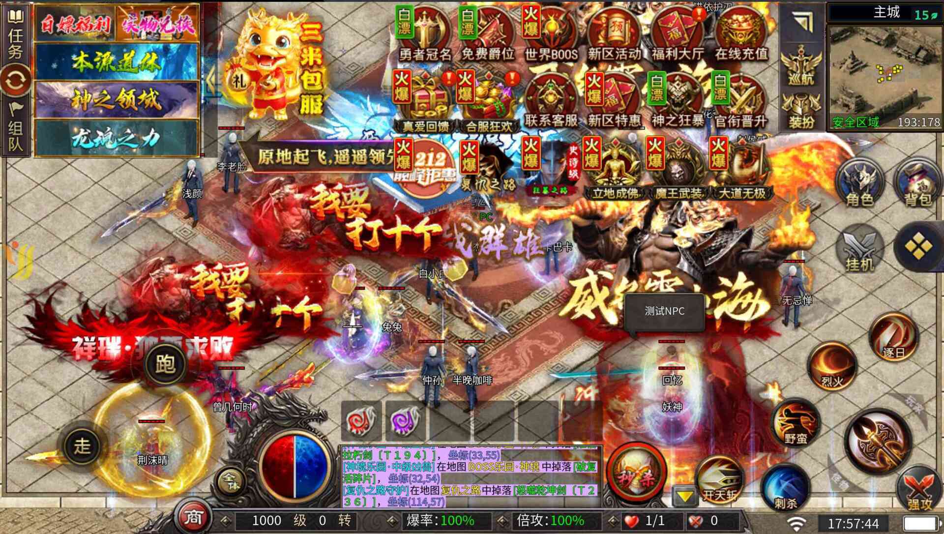 热血传奇 进一区,二区没有,主城中间有个测试NPC就是内置GM 把特效关了能看见 此内容查看价格为10积分,请先登录 |